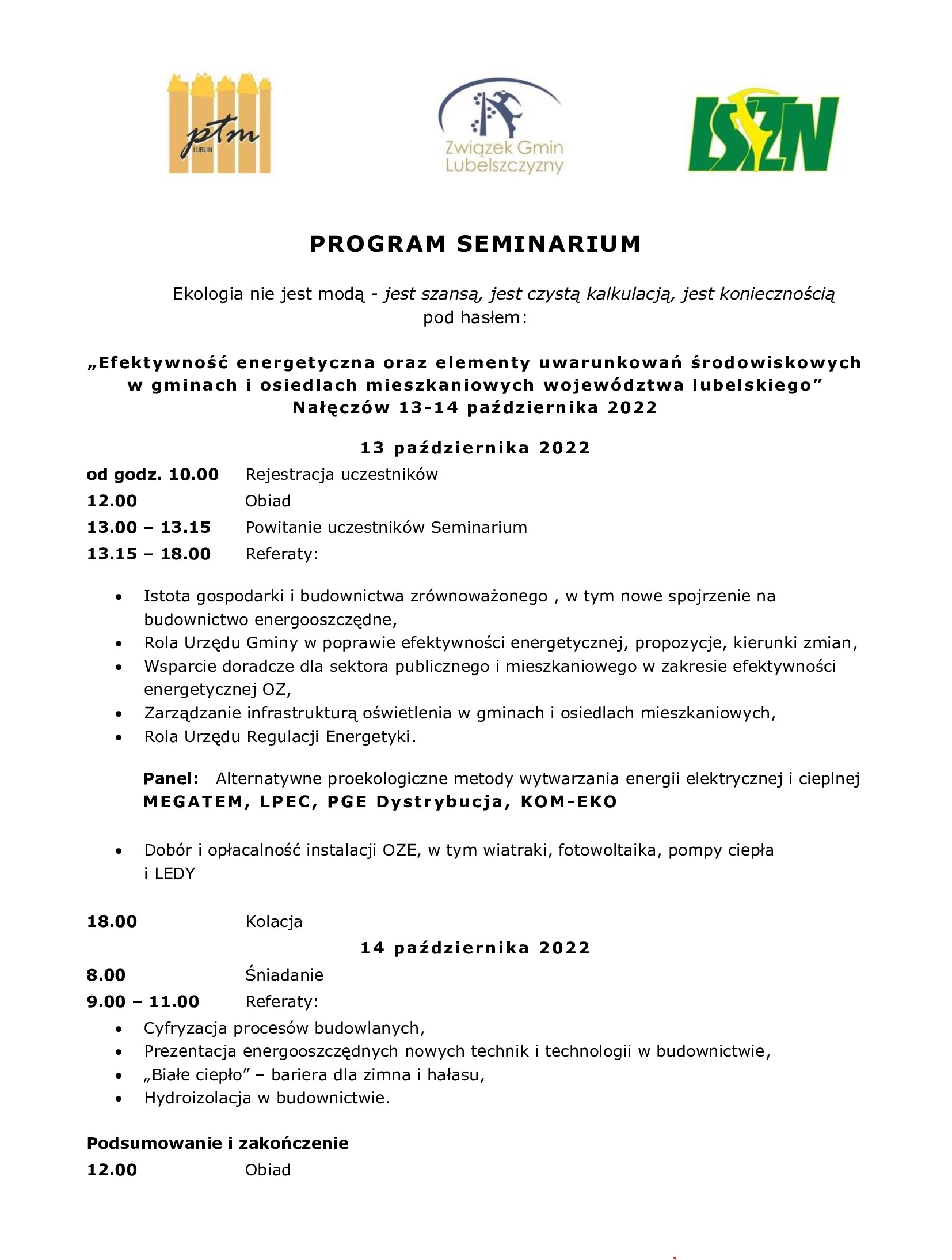Termin i miejsce Seminarium: 13 - 14 października 2022 r. Centrum Szkoleniowe „ENERGETYK” w Nałęczowie przy ul. Paderewskiego 10.